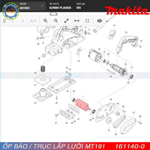 Ví trí Ốp bào 161140-0 trên model M1901B (chi tiết 16)