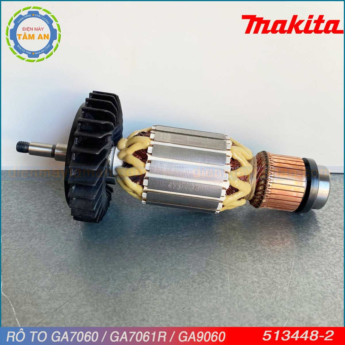 Rô to máy mài góc Makita GA7060 – mã 513448-2 là phụ tùng chính hãng, được thiết kế chuẩn xác giúp máy hoạt động mạnh mẽ, ổn định và bền bỉ. Đây là bộ phận quan trọng trong hệ thống động cơ, quyết định trực tiếp đến công suất và hiệu suất làm việc của máy mài.