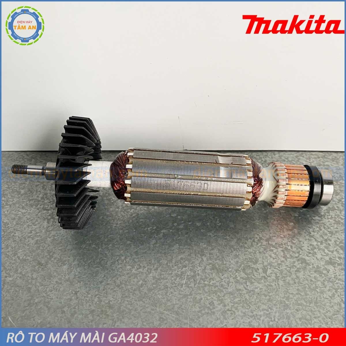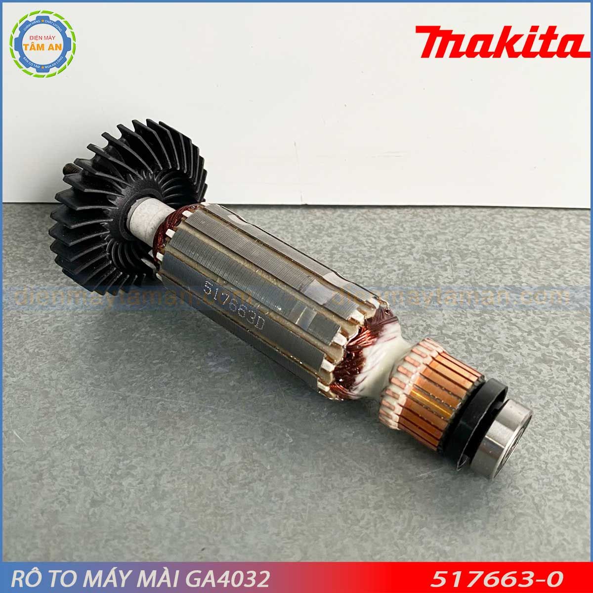 Điện Máy Tâm An chuyên cung cấp rô to máy mài góc GA4032 – 517663-0 chính hãng Makita, giá tốt, bảo hành đầy đủ. Cam kết sản phẩm chuẩn Makita, giao hàng nhanh, hỗ trợ kỹ thuật tận tâm.