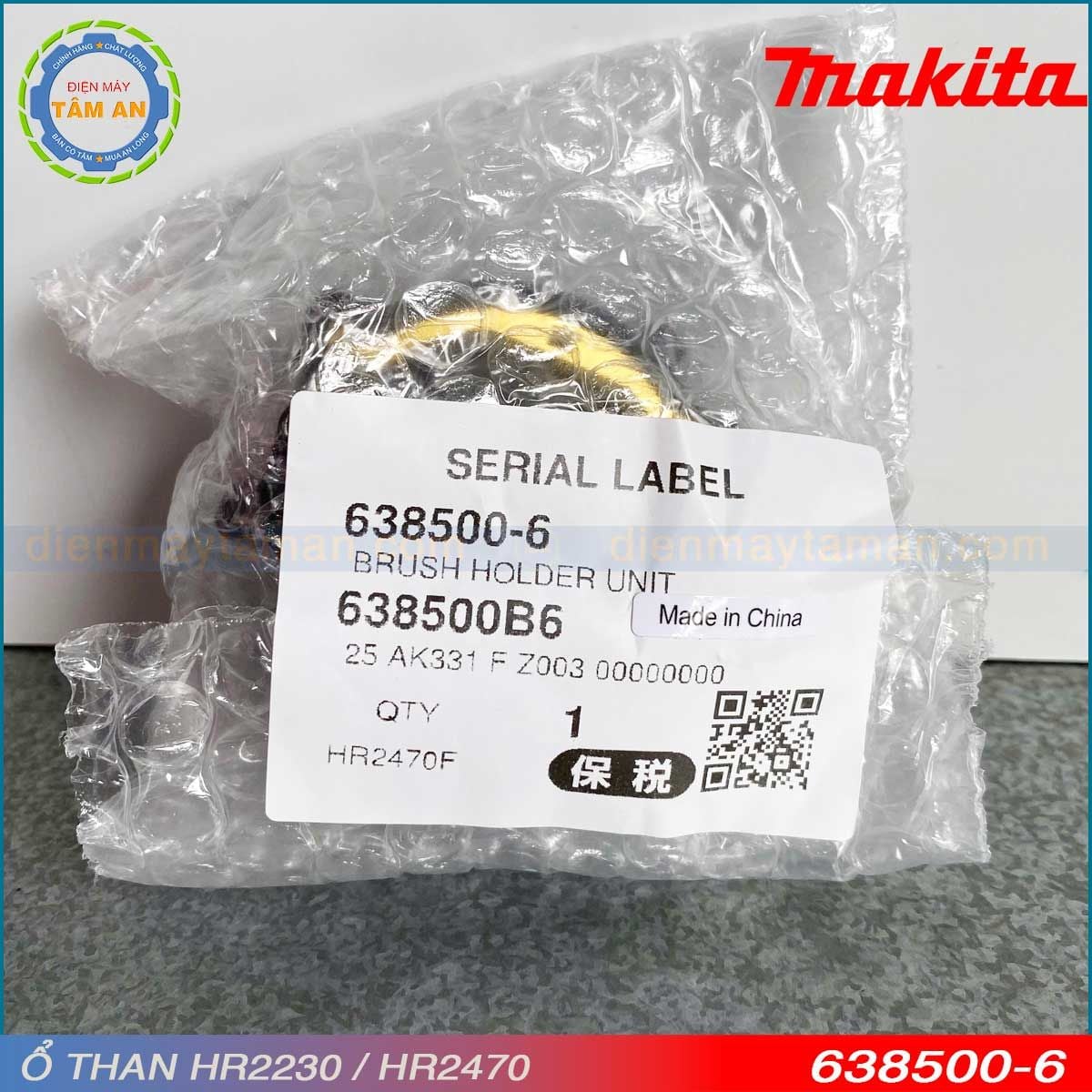 638500-6 – Ổ chổi than HR2470, HR2230, HR2470F là phụ tùng chính hãng Makita, được thiết kế dành riêng cho dòng máy khoan bê tông HR2470. Đây là bộ phận quan trọng trong hệ thống truyền điện, giúp động cơ hoạt động ổn định, mạnh mẽ và duy trì hiệu suất khoan đục lâu dài.