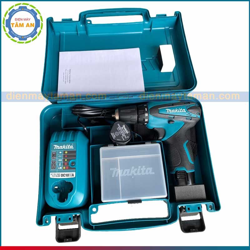 Bộ máy khoan vặn vít 10.8V Makita DF330DWE gồm Thân máy vặn vít dùng PIN 10.8V DF330, 02 PIN 10.8V 1.3Ah, 01 sạc makita 12V dạng đốc, hộp đựng, bao đeo máy khoan, hộp nhựa đựng phụ kiện. Một bộ sản phẩm với đầy đủ phụ kiện, DF330DWE chính là sự chọn lựa thông minh của quý khách.
