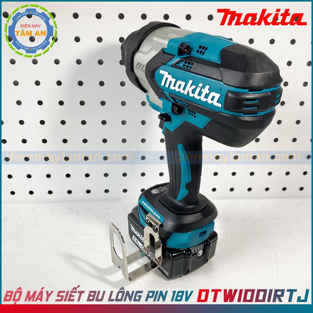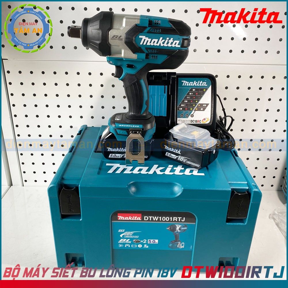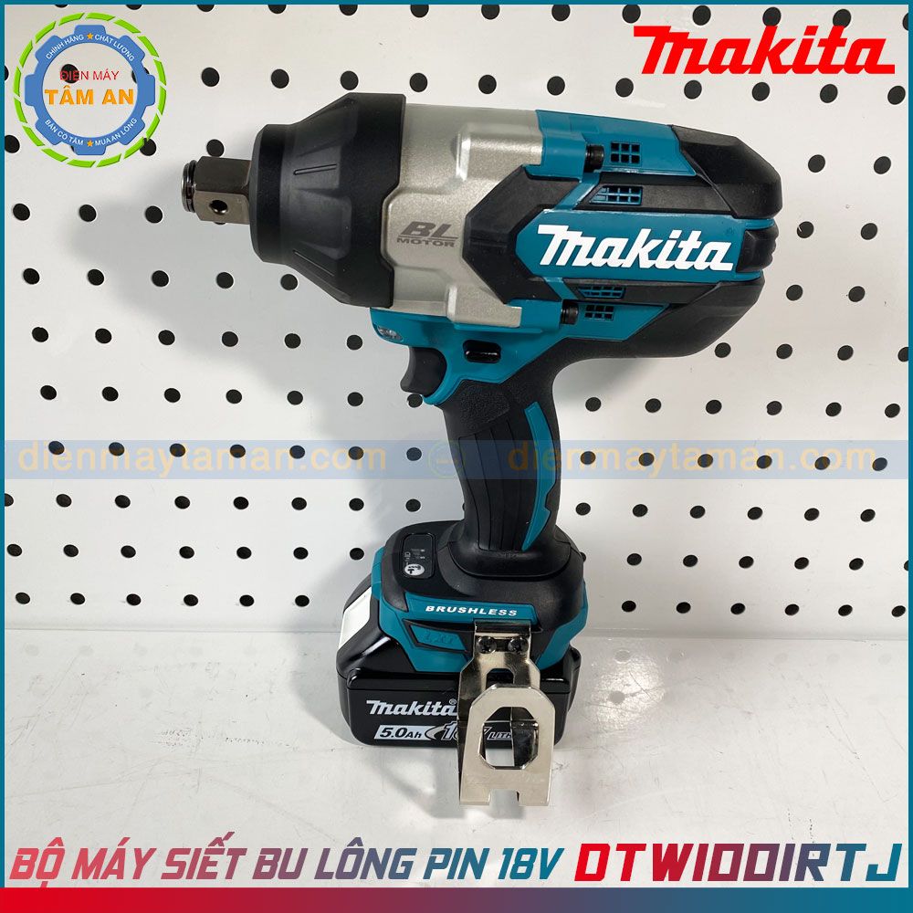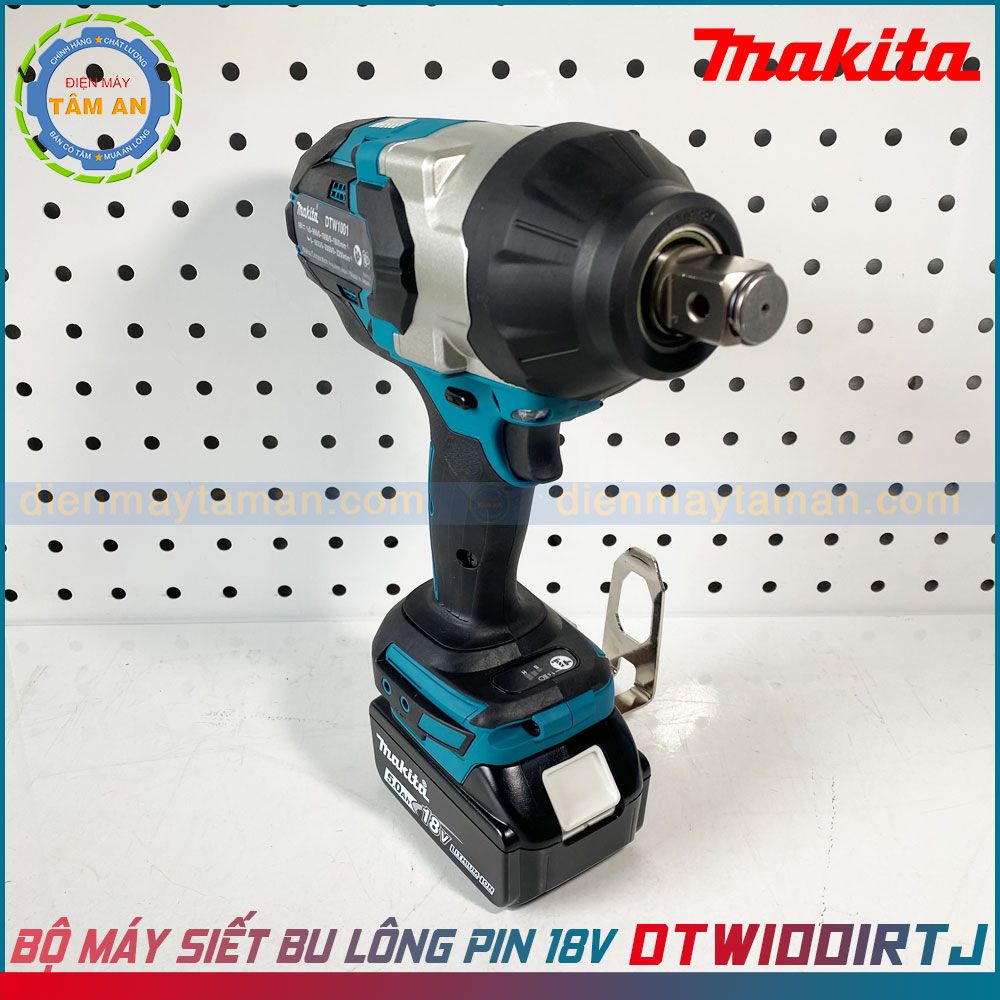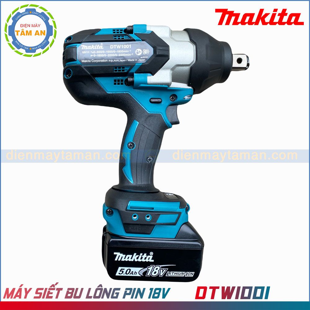 - Dòng sản phẩm máy siết bulong dùng PIN DTW1001RTJ sử sụng 02 PIN 5.0Ah 18V Lithium-ion, dòng PIN đang được sử dụng chung với trên 270 công cụ khác của thương hiệu Makita. Việc bạn đầu tư máy bulong này có thể dễ dàng mở rộng thêm các dòng công cụ dùng pin khác của Makita khi có nhu cầu.