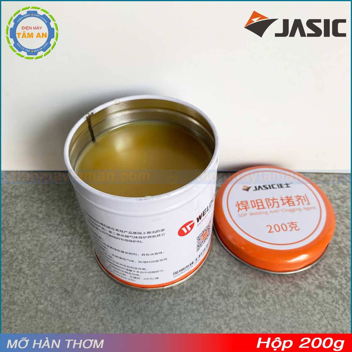 Chế phẩm tẩy sạch bề mặt kim loại – Jasic, hay còn được biết đến với tên gọi mỡ hàn thơm, là sản phẩm chuyên dụng trong ngành hàn MIG. Sản phẩm giúp hạn chế sỉ hàn bám dính vào chụp khí, bép hàn và đầu súng hàn, từ đó kéo dài tuổi thọ linh kiện và duy trì chất lượng mối hàn tối ưu.