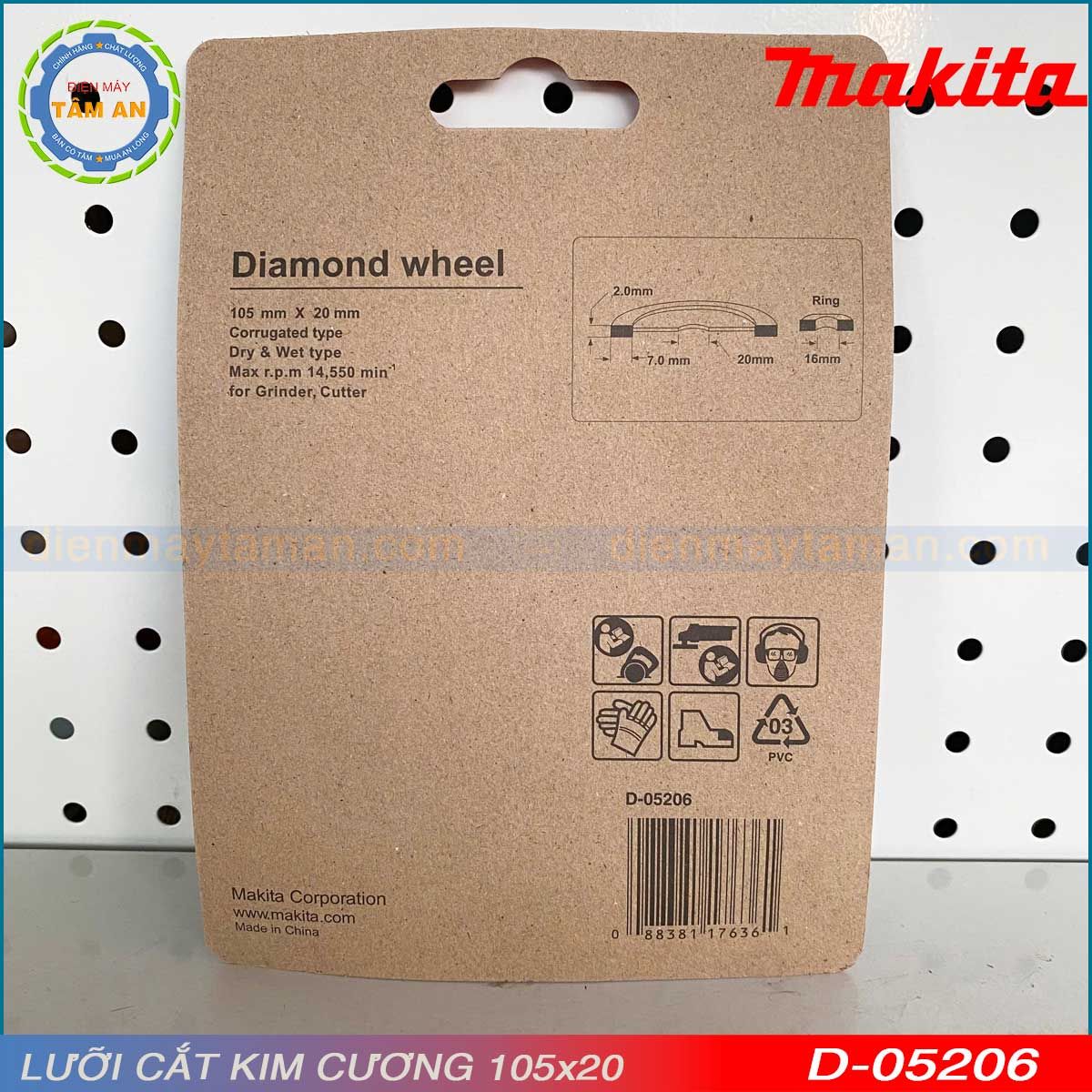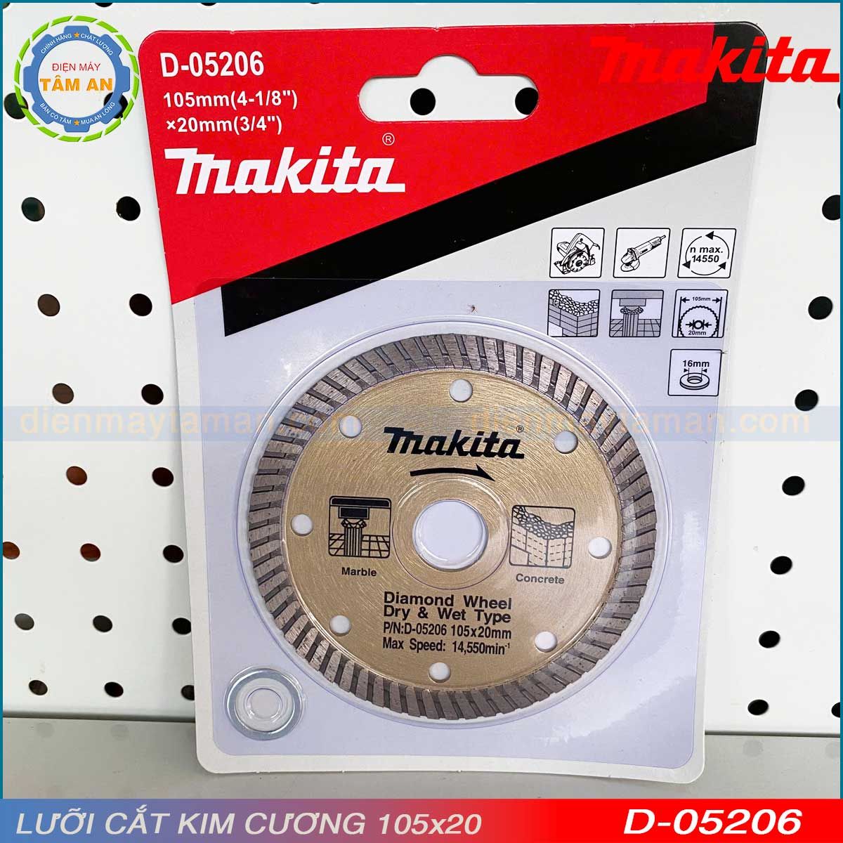 Kích thước chuẩn 105x20mm: Tương thích với nhiều loại máy cắt cầm tay Makita và các thương hiệu phổ biến khác.