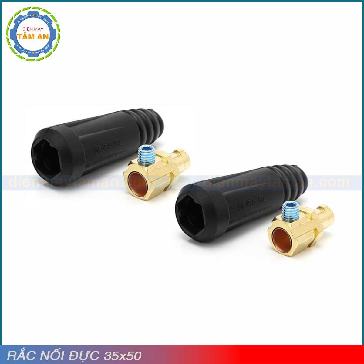 Giắc nối đực 35x50 dùng cho kết nối cáp với máy hàn que hoặc kết nối kẹp mát cho máy hàn tig, hàn mig.