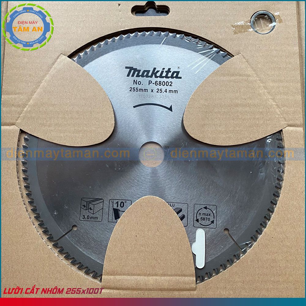 - Số răng ít hơn dòng thông thường 120 răng vậy nên lưỡi P-68002 cắt nhôm dày hơn, cắt thoáng hơn.