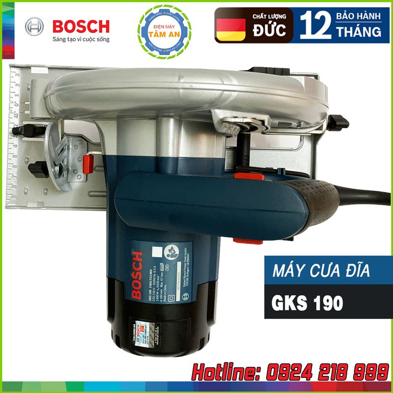 Máy cưa đĩa BOSCH GKS 190 06016230K0 với công suất 1400W, đường kính lưỡi 184mm cho khả năng cắt sâu lên tới 67mm chính là lựa chọn tốt nhất cho các xưởng gỗ, xưởng gia công nội thất. Điện máy Tâm An là đơn vị phân phối các sản phẩm chính hãng BOSCH. Liên hệ 0924218999 để được hỗ trợ tư vấn và đặt mua.