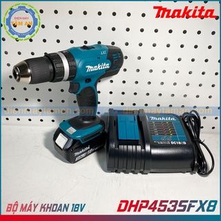 Makita DHP453SFX8 là bộ máy khoan búa kiêm vặn vít dùng pin 18V nổi bật với hiệu năng ổn định, thiết kế bền bỉ và khả năng khoan mạnh mẽ trên gỗ, thép và tường gạch. Sản phẩm đi kèm 1 pin 18V 3.0Ah + 1 sạc tiêu chuẩn DC18SD giúp người dùng sẵn sàng thực hiện mọi công việc khoan – bắt vít ngay khi mở hộp.