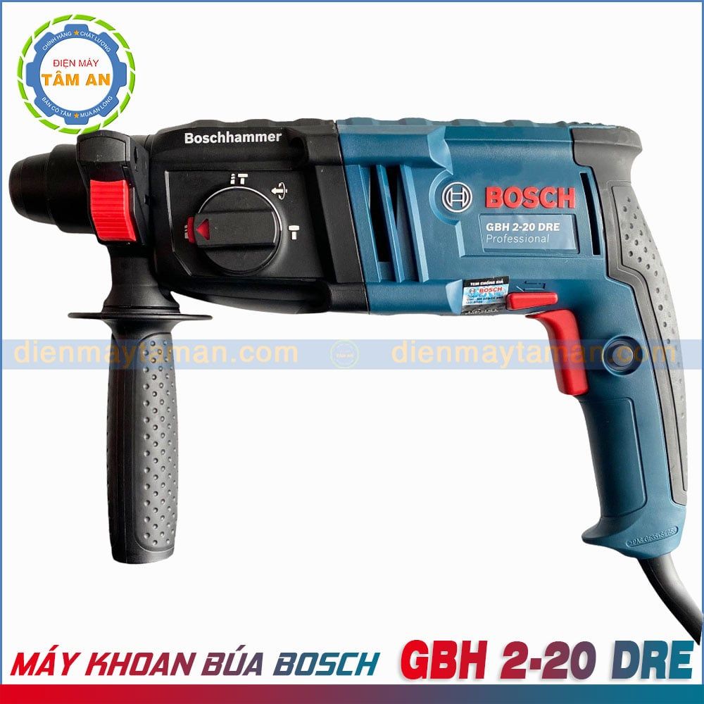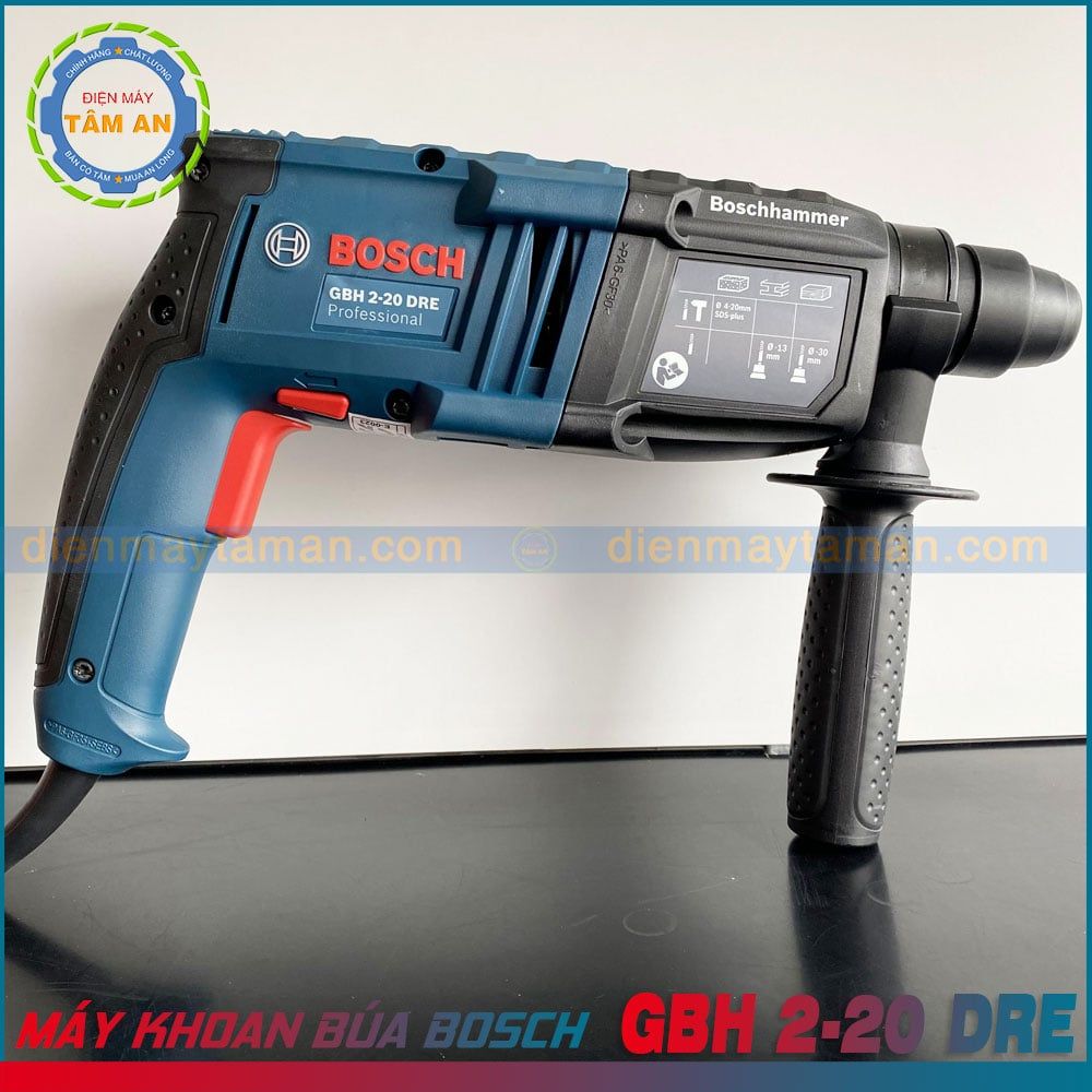 - Máy khoan bê tông BOSCH GBH 2-20 DRE tích hợp 3 chức năng trong 1: Khoan, Khoan búa, đục giúp giảm thiểu tối đa công cụ cần mang theo tới công trường cũng như mang lại sự tiện dụng rất lớn giải quyết phát sinh trong quá trình thi công.