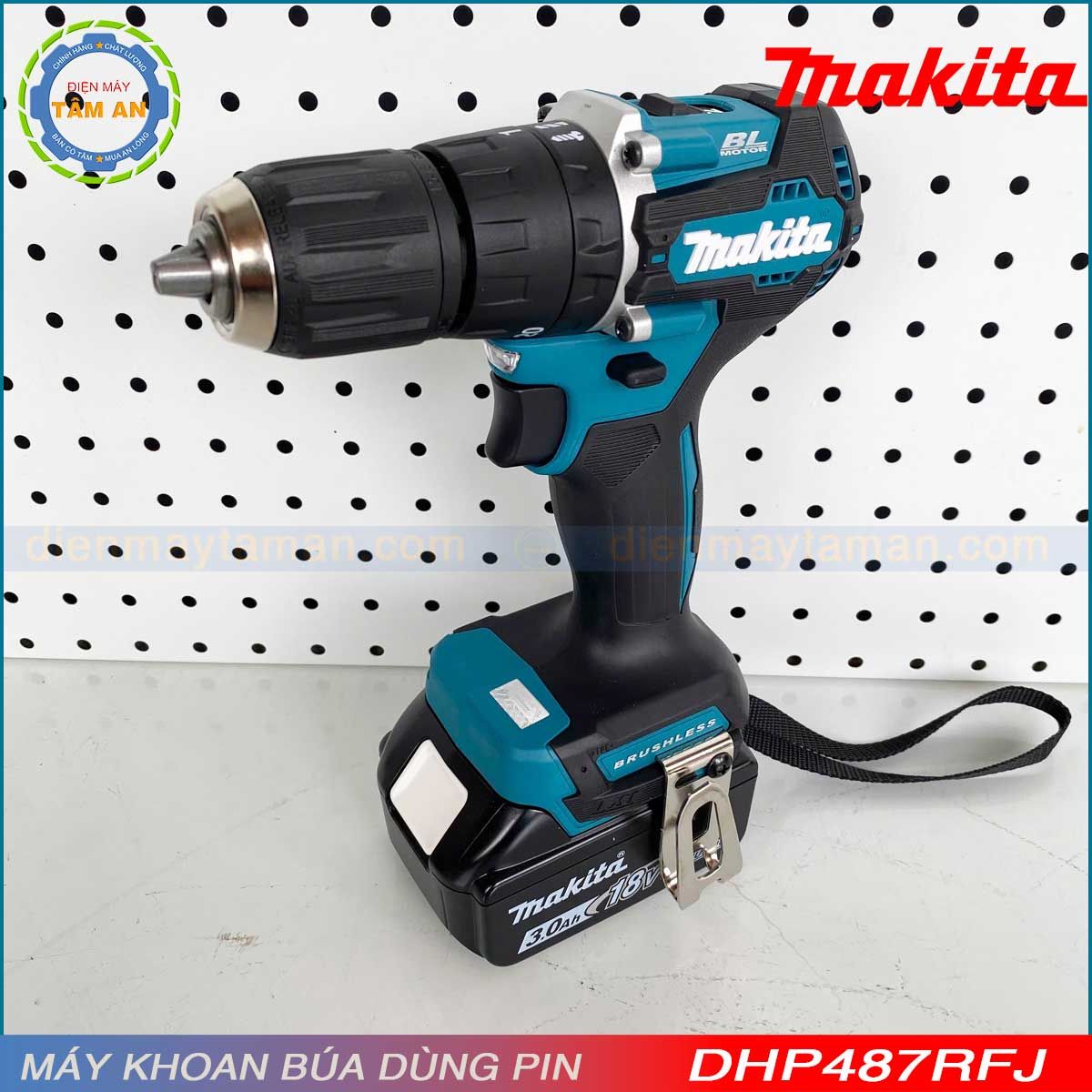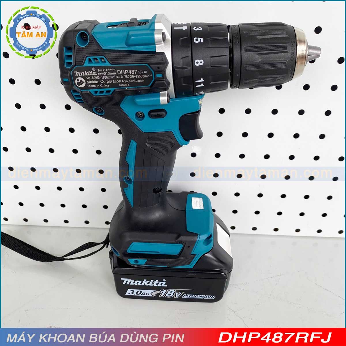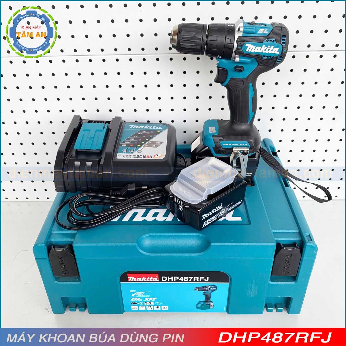 - DHP487RFJ: Bao gồm thân máy DHP487, 02 PIN 3.0Ah (BL1830B), sạc DC18RC, Thùng Makpac