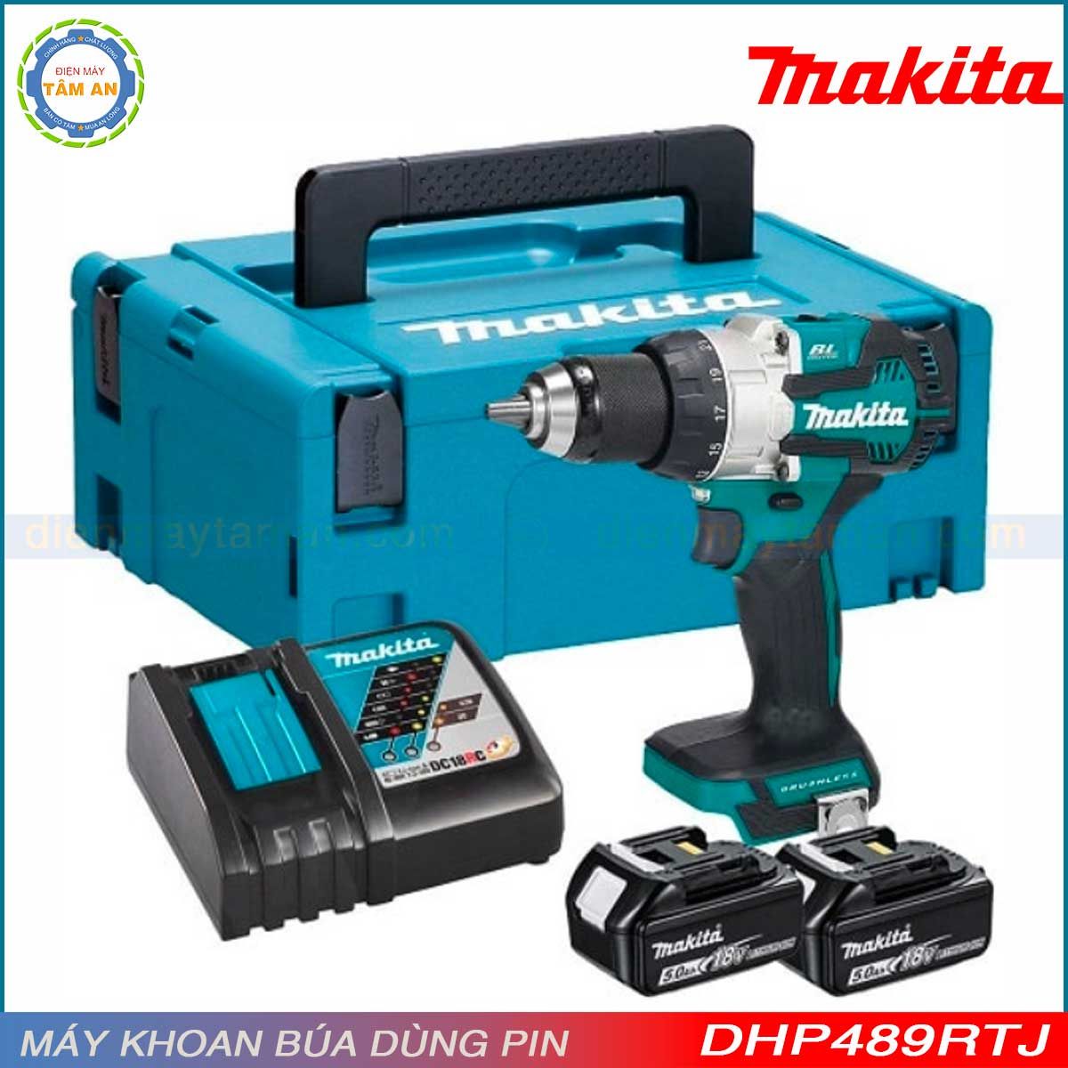 - DHP489RTJ: Gồm thân máy DHP489, 02 pin 5.0Ah, sạc DC18RC, thùng makpac