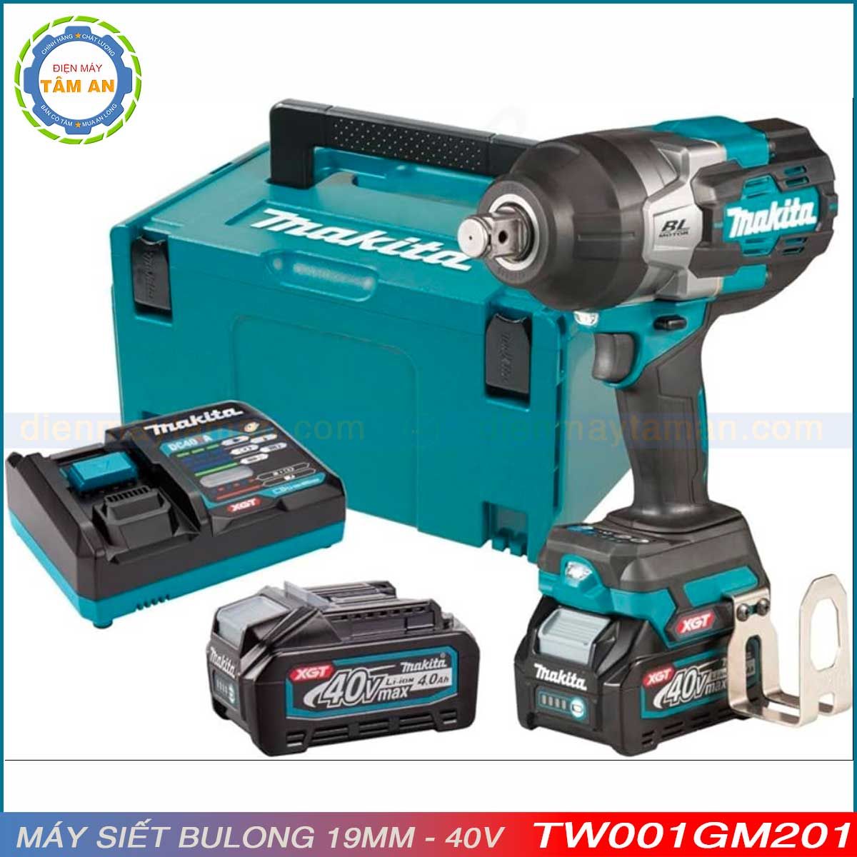 - TW001GM201: Gồm thân máy TW001G, thùng makpac, 02 Pin 40Vmax 4.0Ah (BL4040), 01 Sạc DC40RA