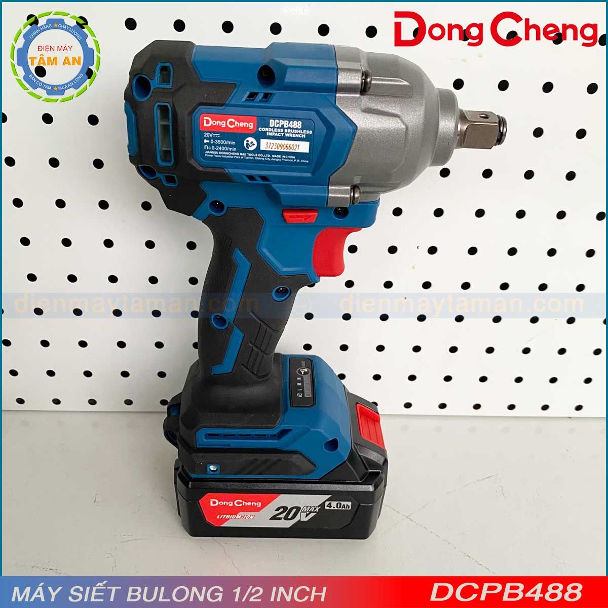 Dưới đây là một số hình ảnh thực tế sản phẩm: Máy siết bulong chạy pin Dongcheng DCPB488" được Tâm An chụp trực tiếp trên sản phẩm: