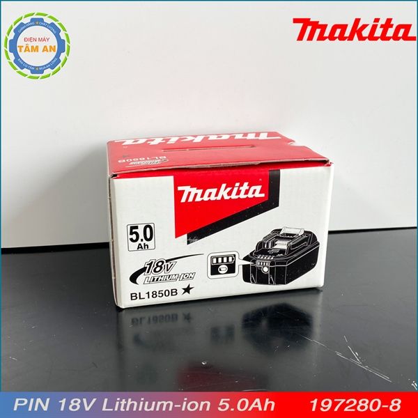 BL1850B là PIN chính hãng Makita dòng Pin Lithium ion 18V 5.0Ah. Sản phẩm PIN chính hãng Makita BL1850B là dòng PIN có thể sử dụng chung cho 320 dòng sản phẩm dùng PIN của Makita. Sản phẩm PIN 5.0Ah BL1850B được bảo hành 06 tháng hoặc 500 lần sạc tại tất cả các trung tâm bảo hành chính hãng trên toàn quốc trong đó có Điện máy Tâm An - Đường Lê Hữu Tựu - xã Nguyên Khê - huyện Đông Anh - HN.
