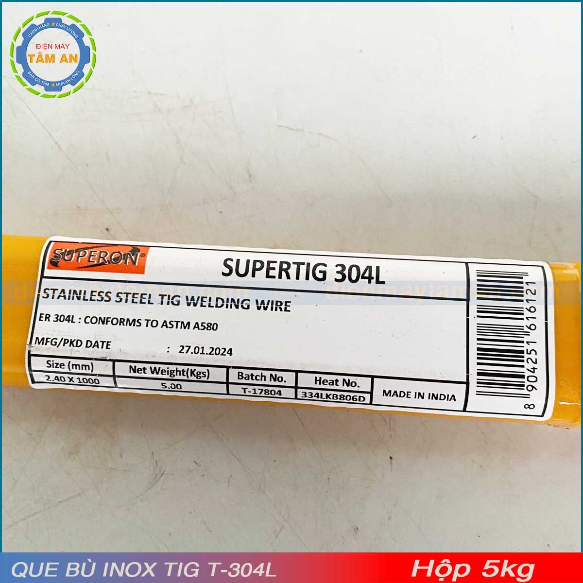 Điện máy Tâm An là địa chỉ cung cấp que bù inox Tig T-304L SUPERON chính hãng, cam kết hàng chuẩn chất lượng với giá cạnh tranh.