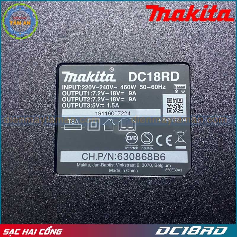 Thông số sạc đôi, sạc nhanh hai cổng Makita DC18RD: